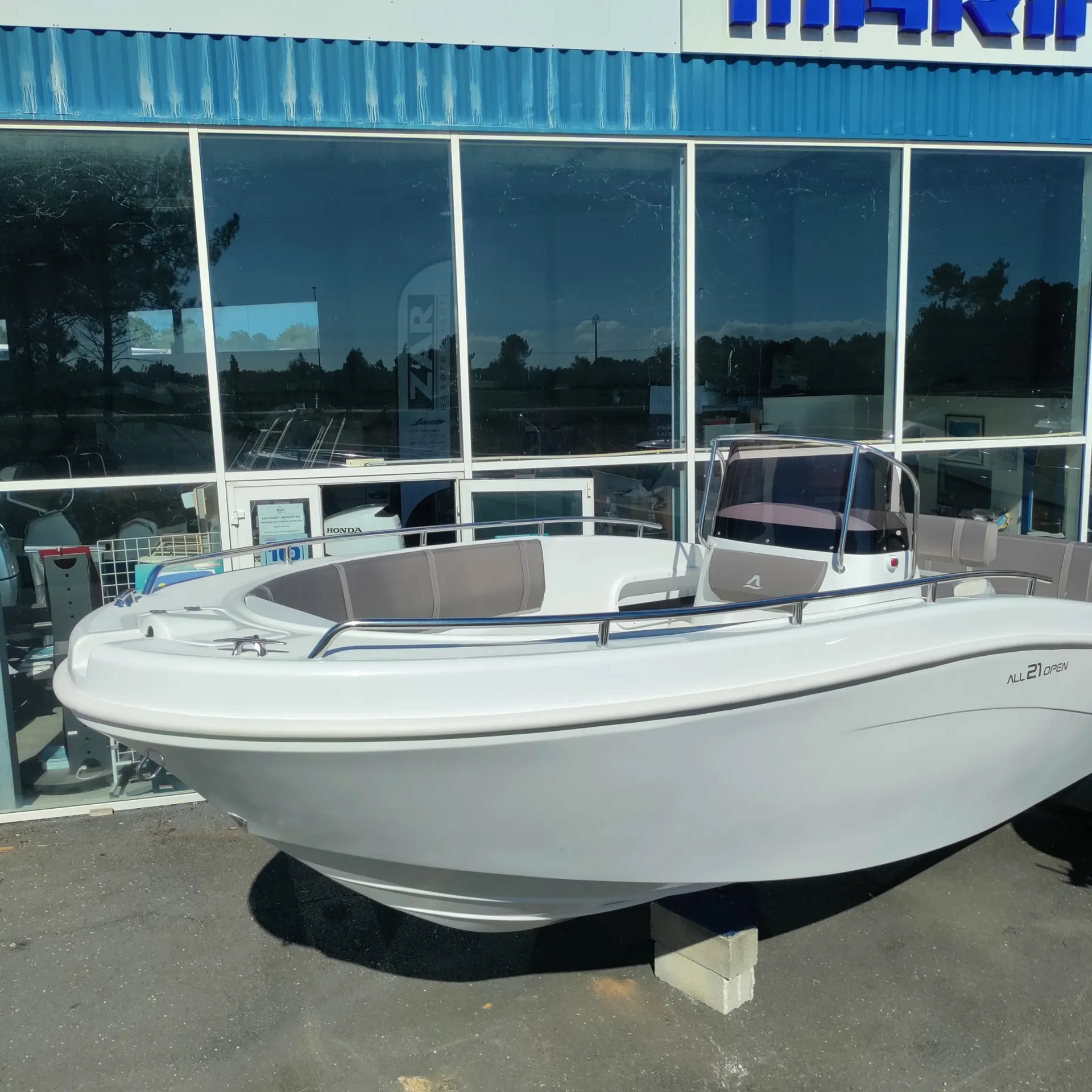 Bateau équipé d un moteur Honda 150cv DXRU avec tachymètre, trim commande pupitre et hélice inox