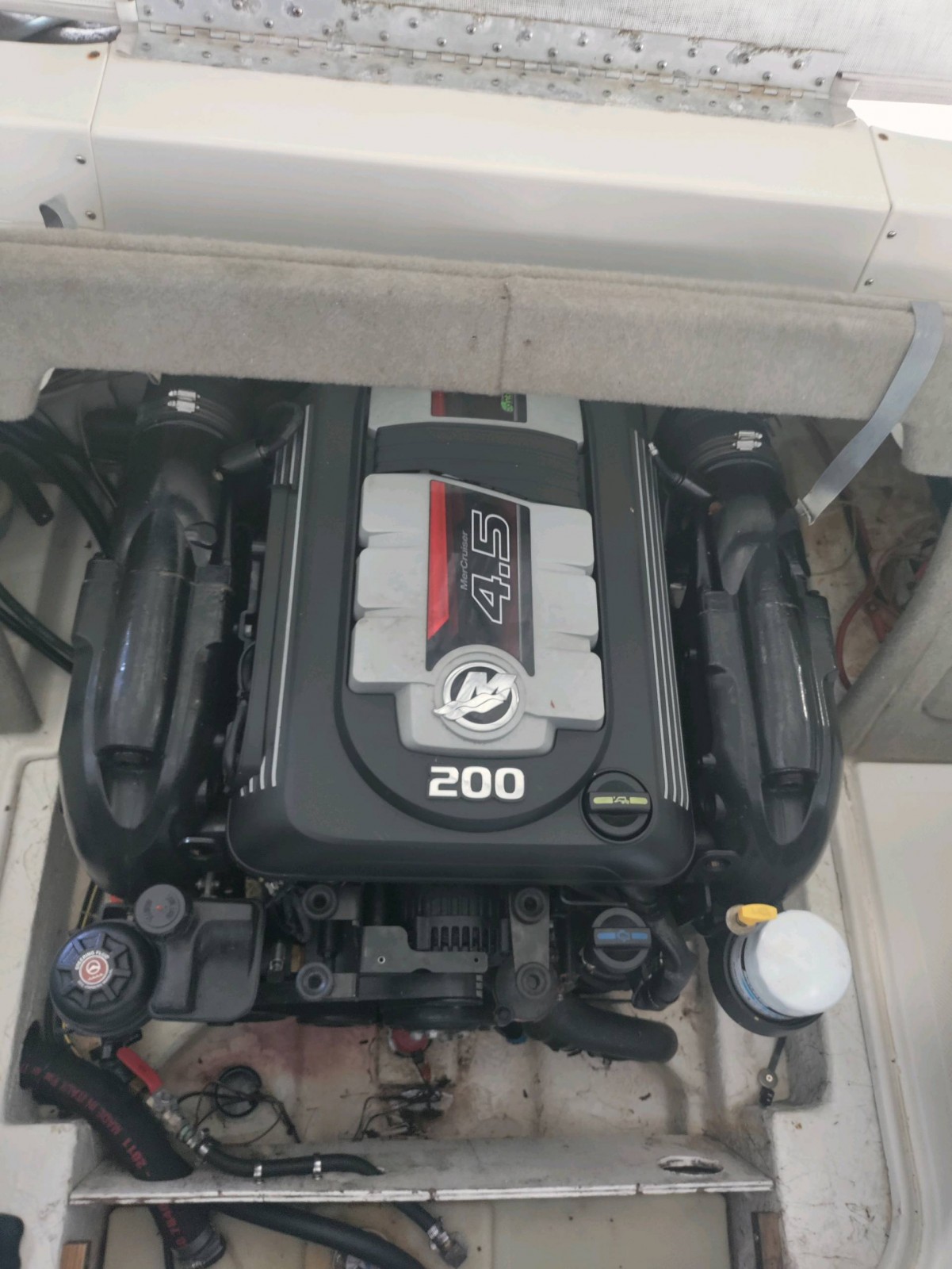 Le moteur, un mercruiser 220cv de 2017 neuf est révisé et entretenu, il totalise MOINS DE 20HRS